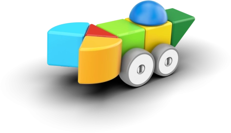 To undervogne med fire hjul forvandler de farvede klodser til et køretøj. Byg og kør – legen får en ny dimension af bevægelse og fantasi.