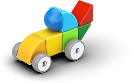 Særligt designede magnetiske elementer fæstner let til hinanden fra flere sider. Børn kan uden besvær bygge en lille bil og andre former og styrke deres finmotorik.