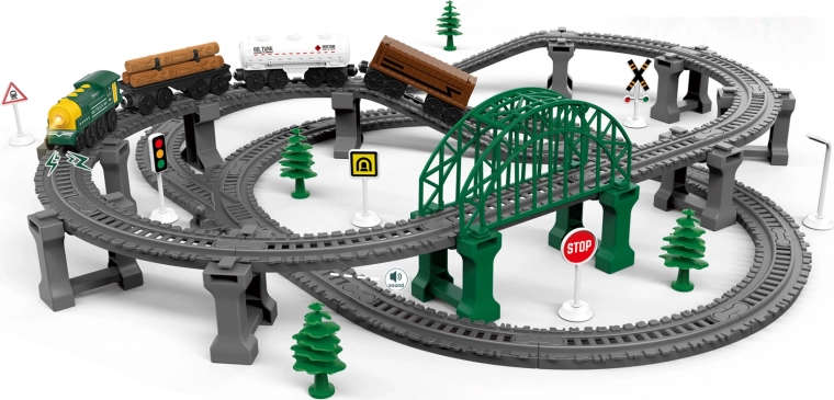 Denne togbane giver børn timevis af kreativ leg. Takket være magnetisk sammenkoblede vogne er håndteringen let og sikker. På lokomotivet finder du praktiske kontrolknapper – den midterste fungerer som ON/OFF, og med sideknapperne vælger du køreretning. En særlig del af banen aktiverer lydeffekter, som gør kørslen ekstra autentisk.