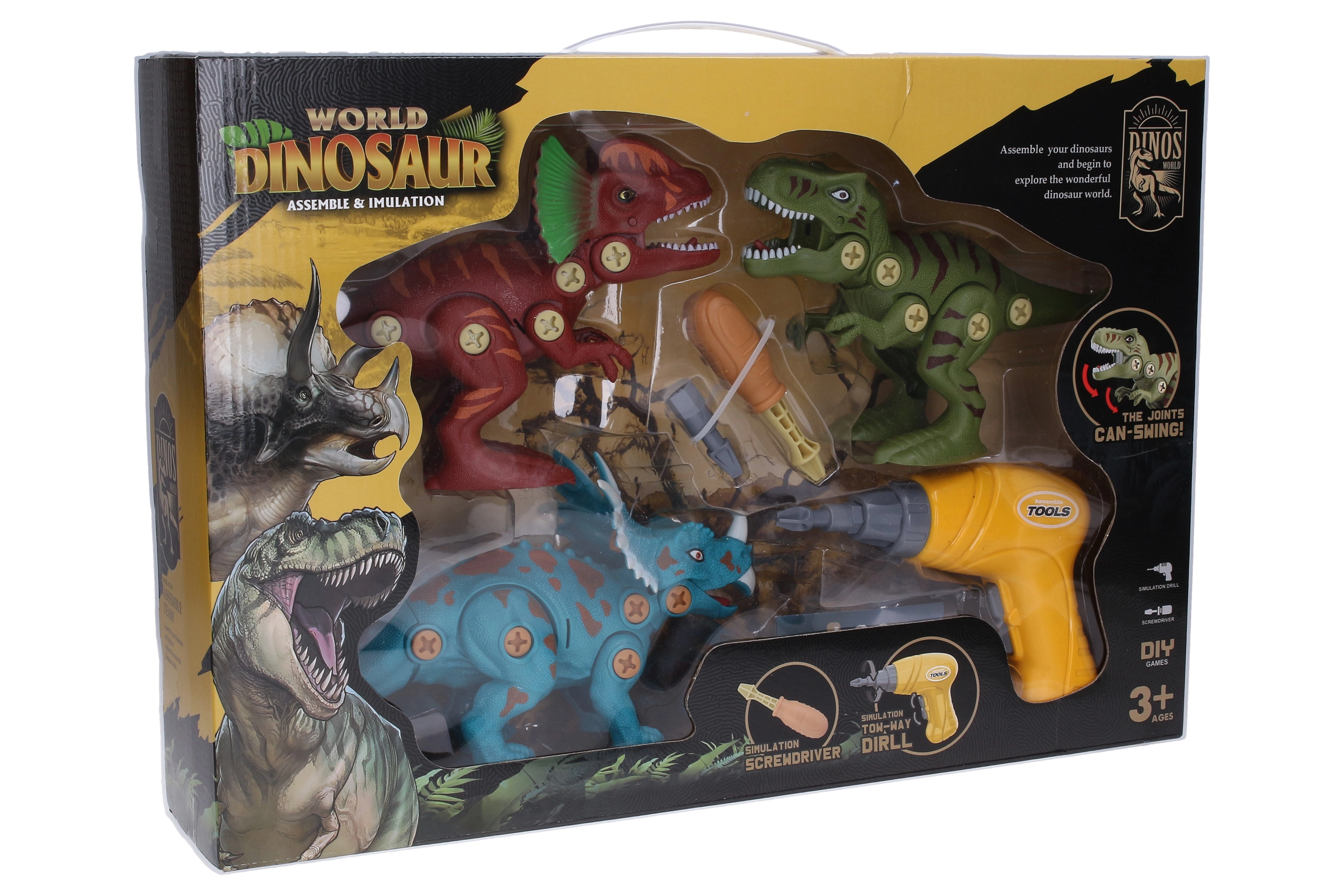 Opdag et kreativt byggesæt, der tager børnene med ind i dinosaurernes verden og samtidig lærer dem grundlæggende montering. Sættet indeholder 3 detaljerede dinosaurer på 20 cm samt to værktøjer – en elektrisk skruetrækker (17×12 cm) og en manuel skruetrækker. Takket være en overskuelig vejledning kan børnene samle delene trin for trin.