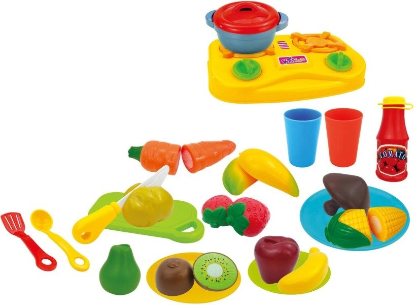 Den praktiske kurv gør det let at opbevare og transportere, så sættet passer både til leg derhjemme og på farten. Sættet giver realistisk madlavningsleg, understøtter rolleleg samt læring af farver og former.