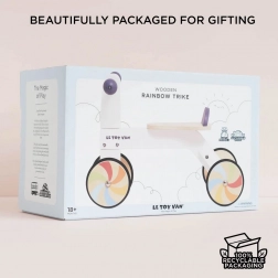 Oplev glæden ved bevægelse med den elegante LE TOY VAN løbecykel i regnbuedesign. Omhyggeligt fremstillet af FSC®-certificeret træ kombinerer den bæredygtighed, kvalitet og legende udtryk. Takket være det ergonomiske sæde og de let betjente styr er den et perfekt valg til børn fra 1,5 år, som lærer at holde balancen og udvikle motorikken.