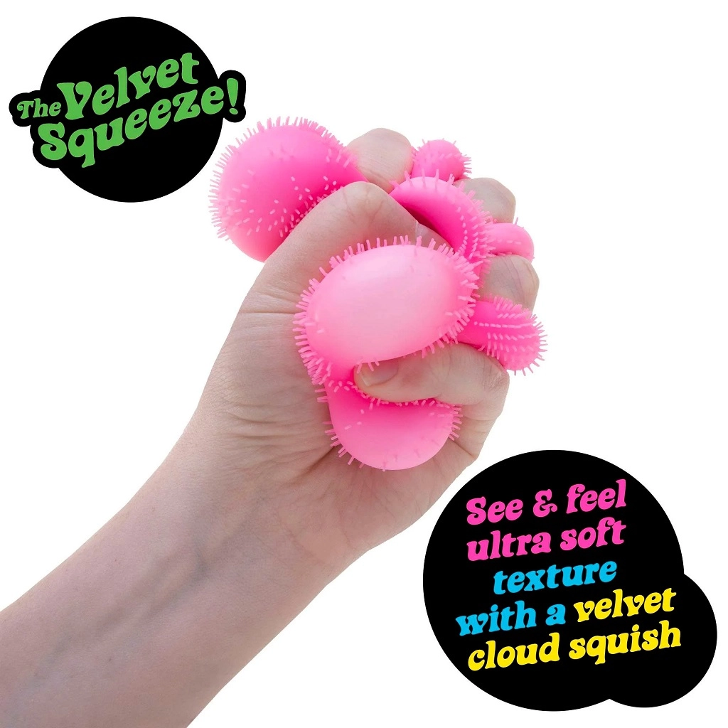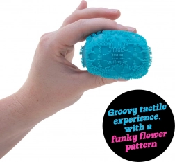 Leg, slap af og forbedr koncentrationen med klemmbolden SCHYLLING NeeDoh Flower Power. Dens behageligt bløde, fløjlsagtige overflade med et legende blomsterprint og den blide knitren giver en sanseoplevelse, der beroliger sindet og holder hænderne beskæftiget – ideel til både børn og voksne.