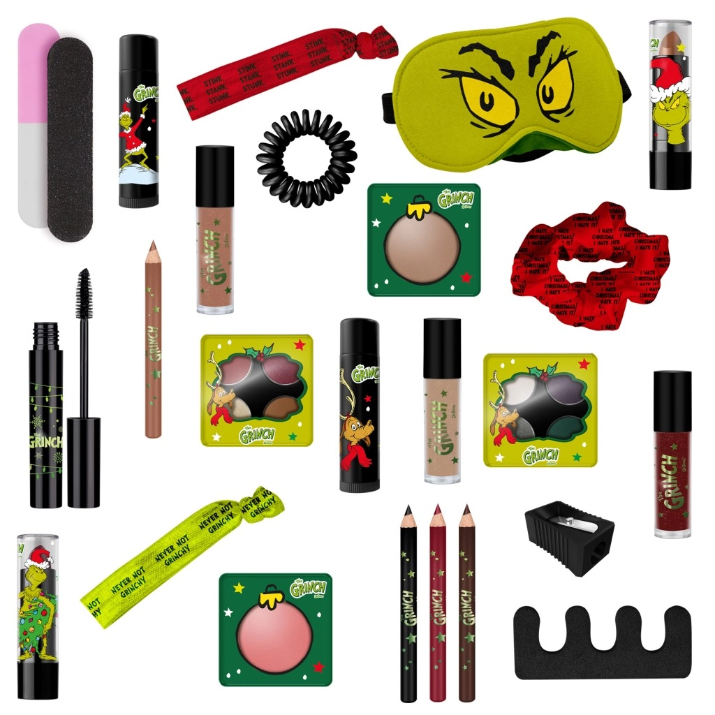 Denne legesyge adventskalender inspireret af GRINCH gemmer på 24 låger fyldt med kosmetik og tilbehør. Skab hver dag en ny makeup – fra naturlig til iøjnefaldende, festlige looks. Takket være det brede udvalg af produkter klarer du bryn, øjne, læber og negle og fuldender det med praktiske hjælpere til daglig pleje.