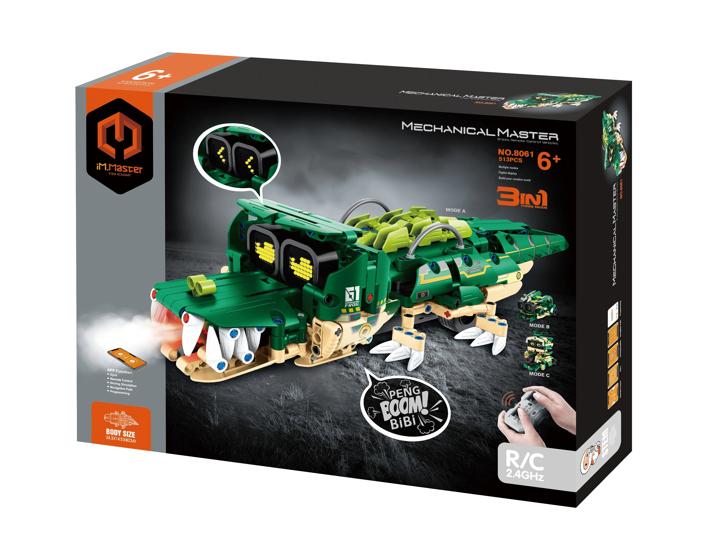 Oplev den kreative verden af robotik med det robotiske krokodille-byggesæt 3-i-1. Byg hovedmodellen som en krokodille eller andre varianter, og styr dem nemt med en RC-fjernbetjening. Integrerede lyseffekter giver legen et realistisk præg og endnu mere sjov. Takket være den gennemtænkte konstruktion er modellen stabil og klar til timevis af underholdning.