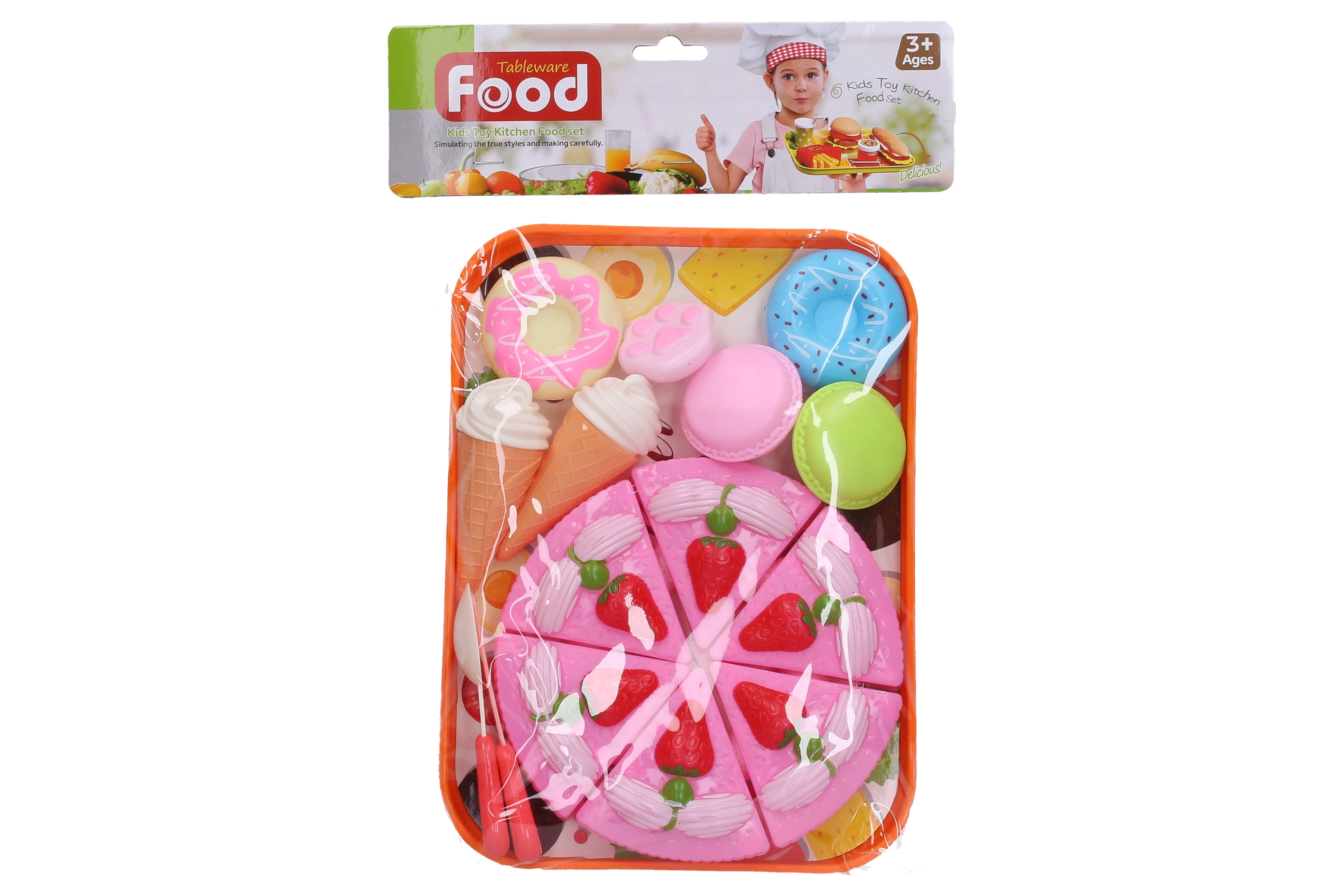 Dette kreative børnesæt vil glæde alle små konditorer. Den udskærbare kage med en diameter på 26 cm kan deles i stykker og samles igen, så den er ideel til at lege fødselsdagsfest. I pakken finder du et fad, bestik og andre tilbehør, som gør enhver børnemiddag endnu sjovere.