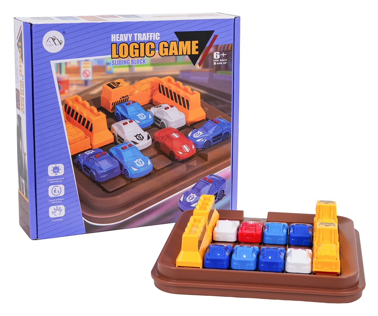 Traffic er et populært logisk puslespil, hvor børn trin for trin løser en trafikgåde. Flyt køretøjerne på spillepladen kun frem og tilbage, og planlæg den bedste rute for at få den røde bil ud af parkeringsfælden. Fantastisk til udvikling af logisk tænkning, strategisk planlægning og tålmodighed.
