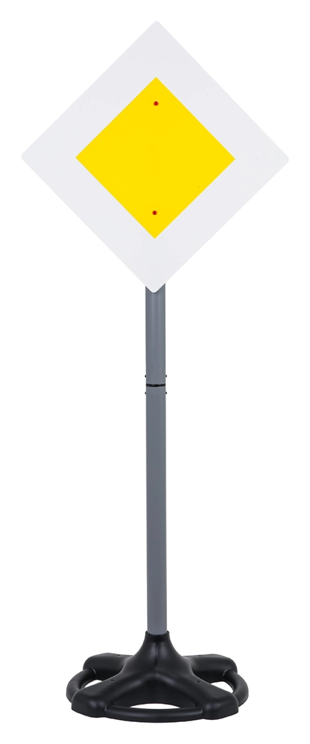 Kraftige farver og tydelige symboler efterligner rigtige skilte og understøtter undervisning i færdselslære.