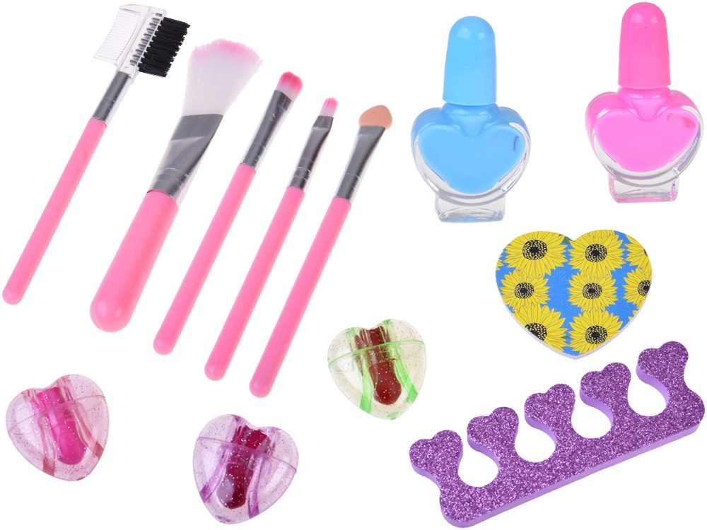 Alt er overskueligt arrangeret, let tilgængeligt og egnet til sikker børneleg under opsyn af voksne. Takket være det omfattende tilbehør og organiseringen i flere niveauer lærer børn grundlæggende pleje af udseendet, udvikler kreativitet og finmotorik. Kufferten lukkes med magnet og har mål på 24,5 × 17,5 × 8,5 cm, så den er nem at opbevare og transportere.