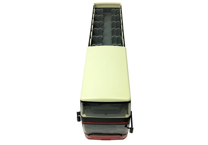 Pakken indeholder et genopladeligt batteri 4,8 V og en USB-oplader, så bussen hurtigt er klar til brug. De medfølgende gelændere gør det let at omdanne øverste etage til en åben cabrio-sightseeingbus. Bløde gummidæk giver godt greb og støjsvag kørsel på forskellige underlag.