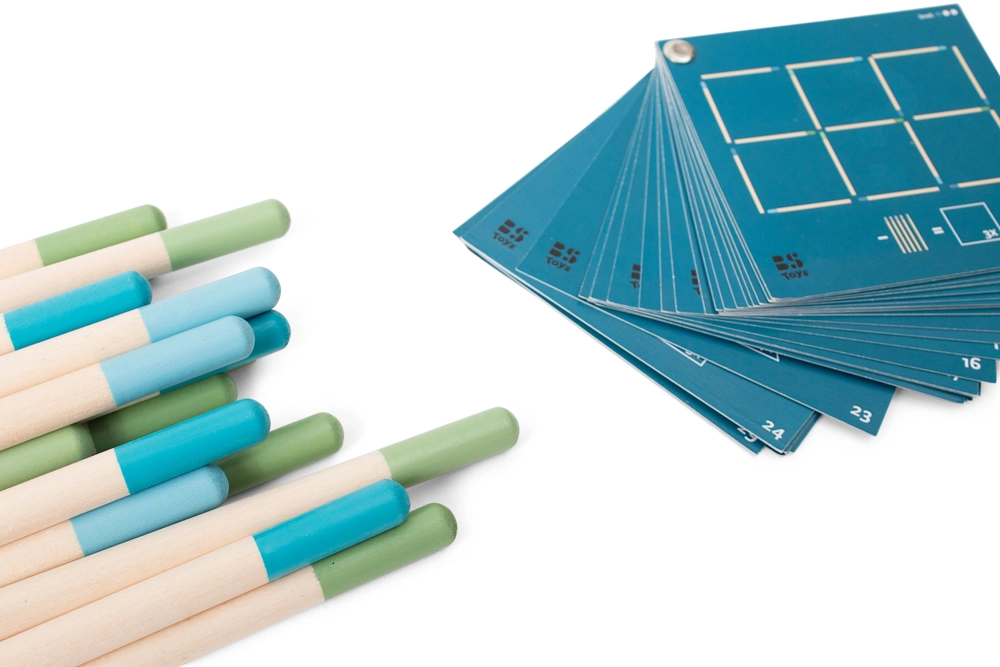 Pakken indeholder: 24 træpinde med farvede ender (21 × 0,9 cm), 30 opgavekort og en stofpose til nem opbevaring. Spillet støtter vedholdenhed, løsningsorienteret tænkning og logisk ræsonnement.