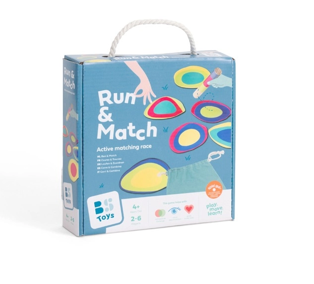 Farveløb er et dynamisk bevægelsesspil, der får hele familien op at stå. Spred måtterne ud, træk en pind fra posen, og løb til den matchende farve. Den enkle idé fanger børn med det samme og styrker både naturlig konkurrence og samarbejde.