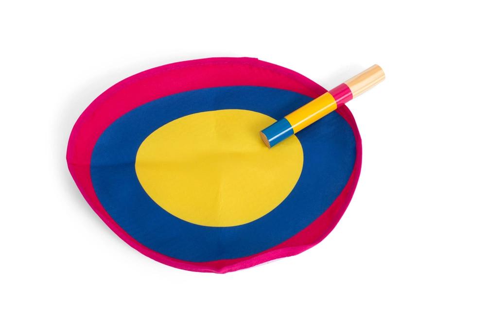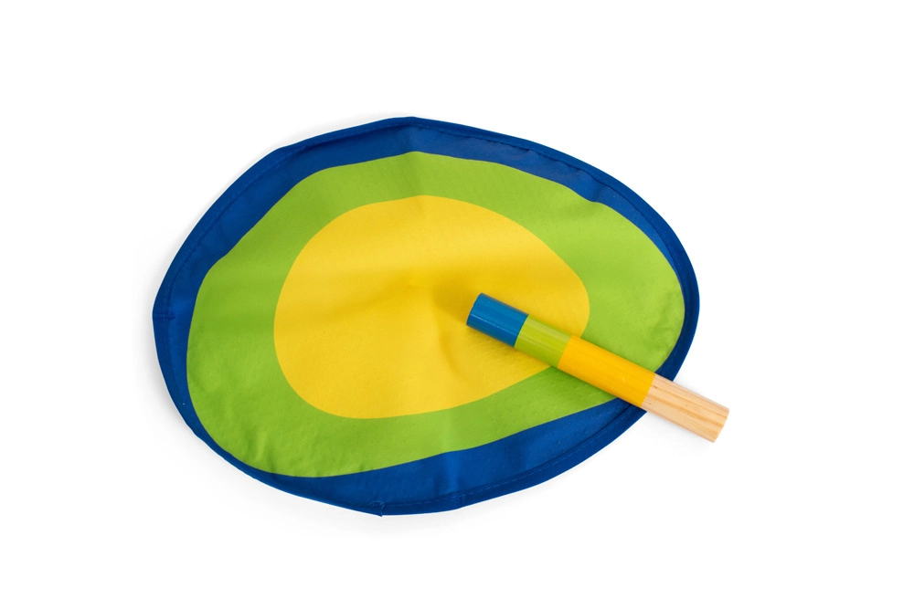 Glatte træpinde med farvede striber er lette at holde om og tåler også intensiv leg. Opbevaringsposen gør det nemt at pakke hurtigt sammen efter spillet.