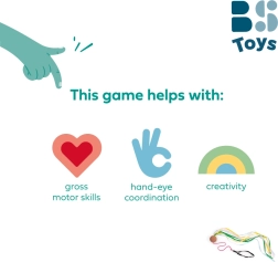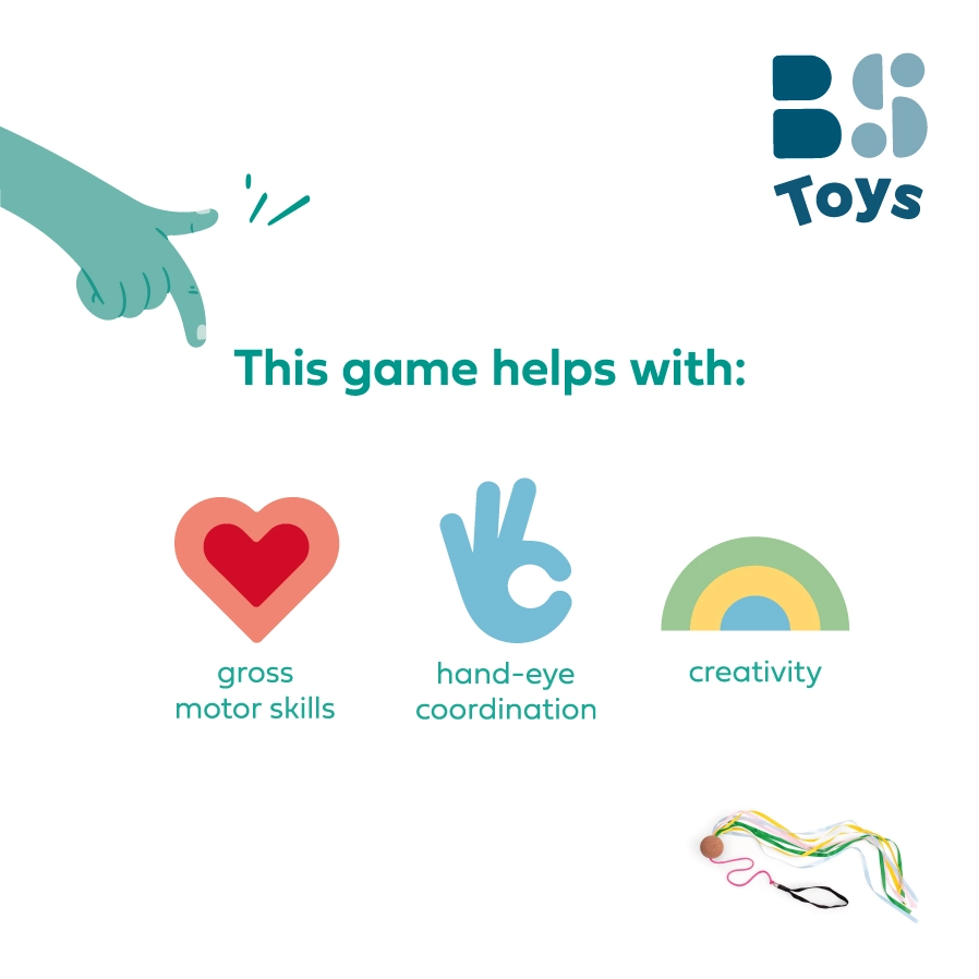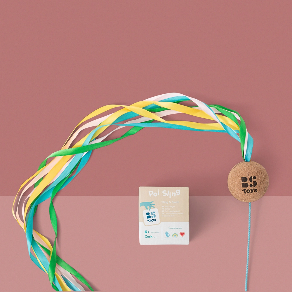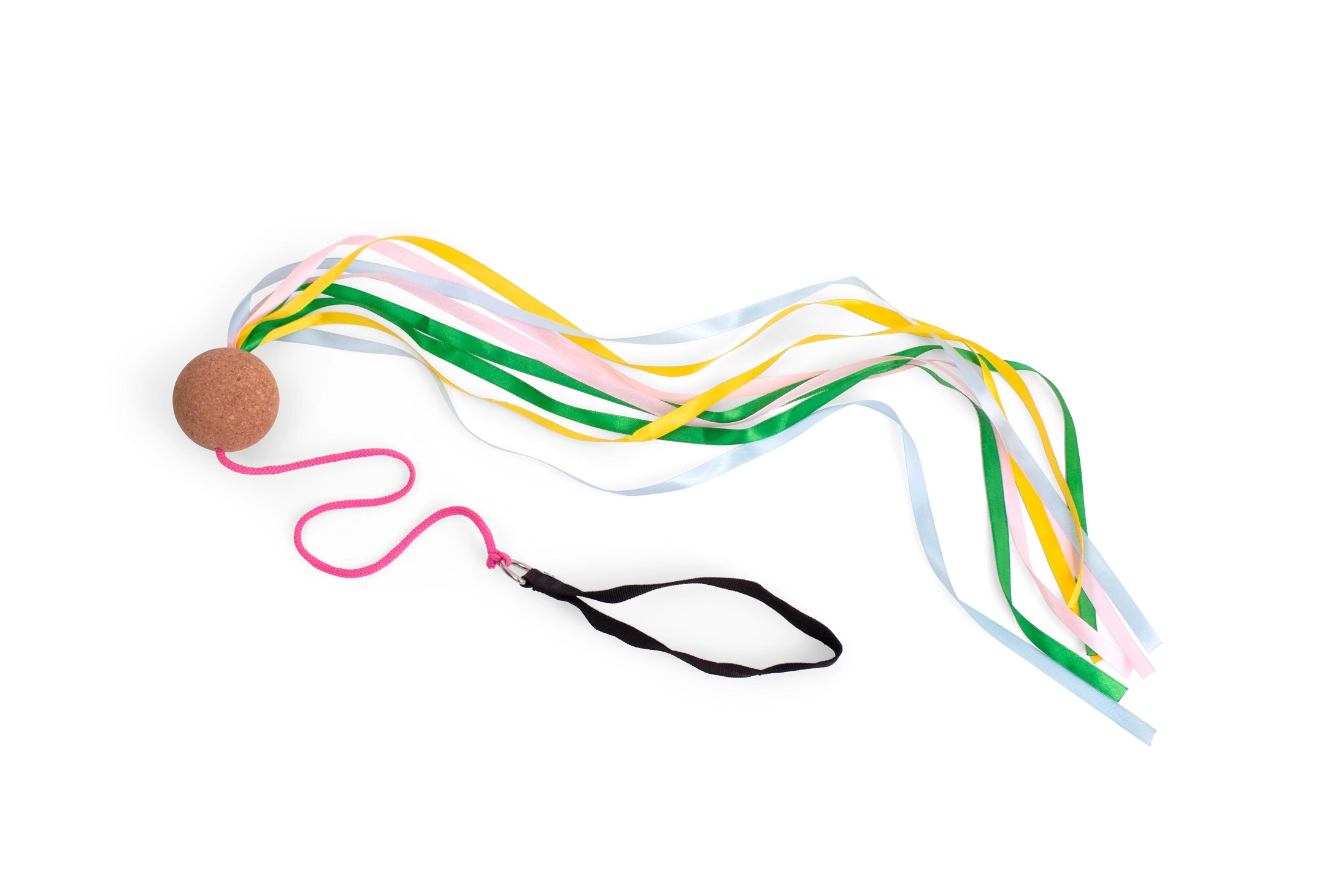 Perfekt til leg derhjemme, skolefritidsordninger og bevægelseshold. De lange bånd giver en attraktiv visuel effekt, mens korkkuglen giver en behagelig, sikker vægt for jævn rotation.