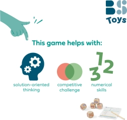 Spillerne træner regning, mønstergenkendelse og beslutningstagning, når de vælger de bedste kombinationer. De solide træterninger og den praktiske blok med blyant sikrer, at spillet er klar til brug med det samme – derhjemme, i sommerhuset og på tur.