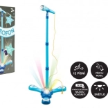 Sjov børne- karaoke-mikrofon med stativ, der bringer farverige lyseffekter, 12 indbyggede sange og mulighed for tilslutning af MP3 eller mobil til enhver fest. Takket være den justerbare højde på 40–80 cm vokser den med børnene og styrker både selvtillid og kærlighed til musik.