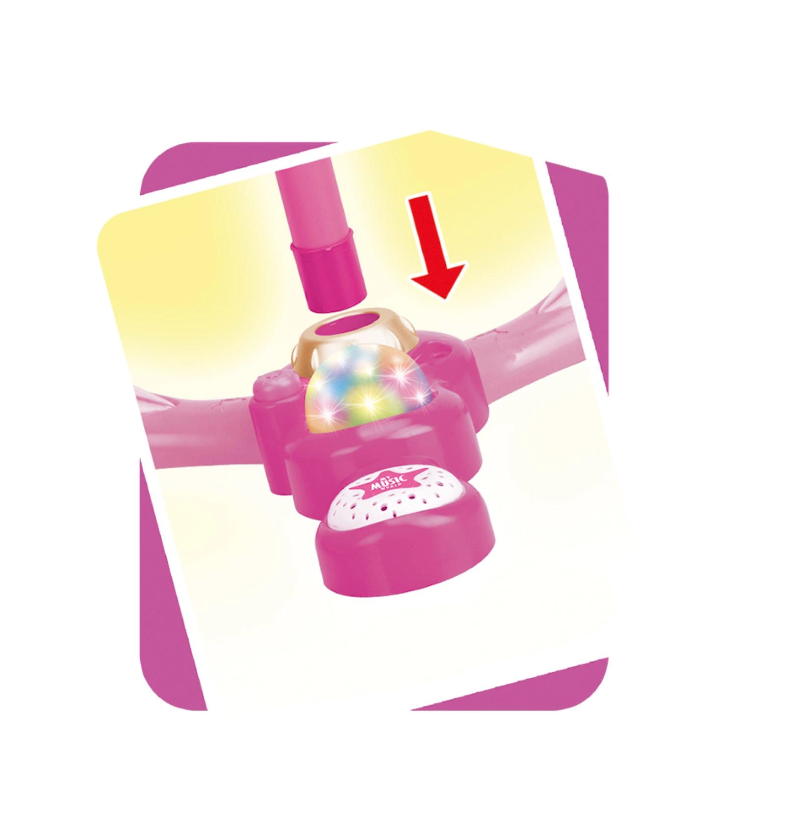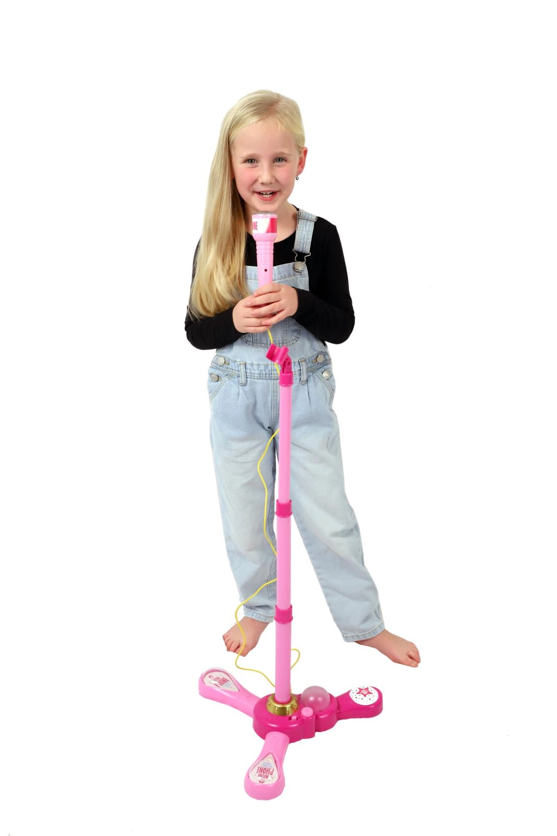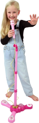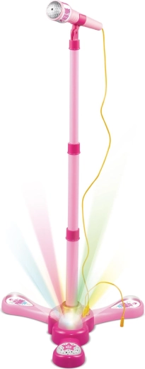 Den pink karaokemikrofon på stativ forvandler hvert børneværelse til en scene. Den byder på 12 indbyggede sange, farverige lyseffekter og mulighed for tilslutning af MP3 eller mobil. Takket være justerbar højde 40–80 cm vokser den med barnet og er ideel til små sangere fra 3 år.