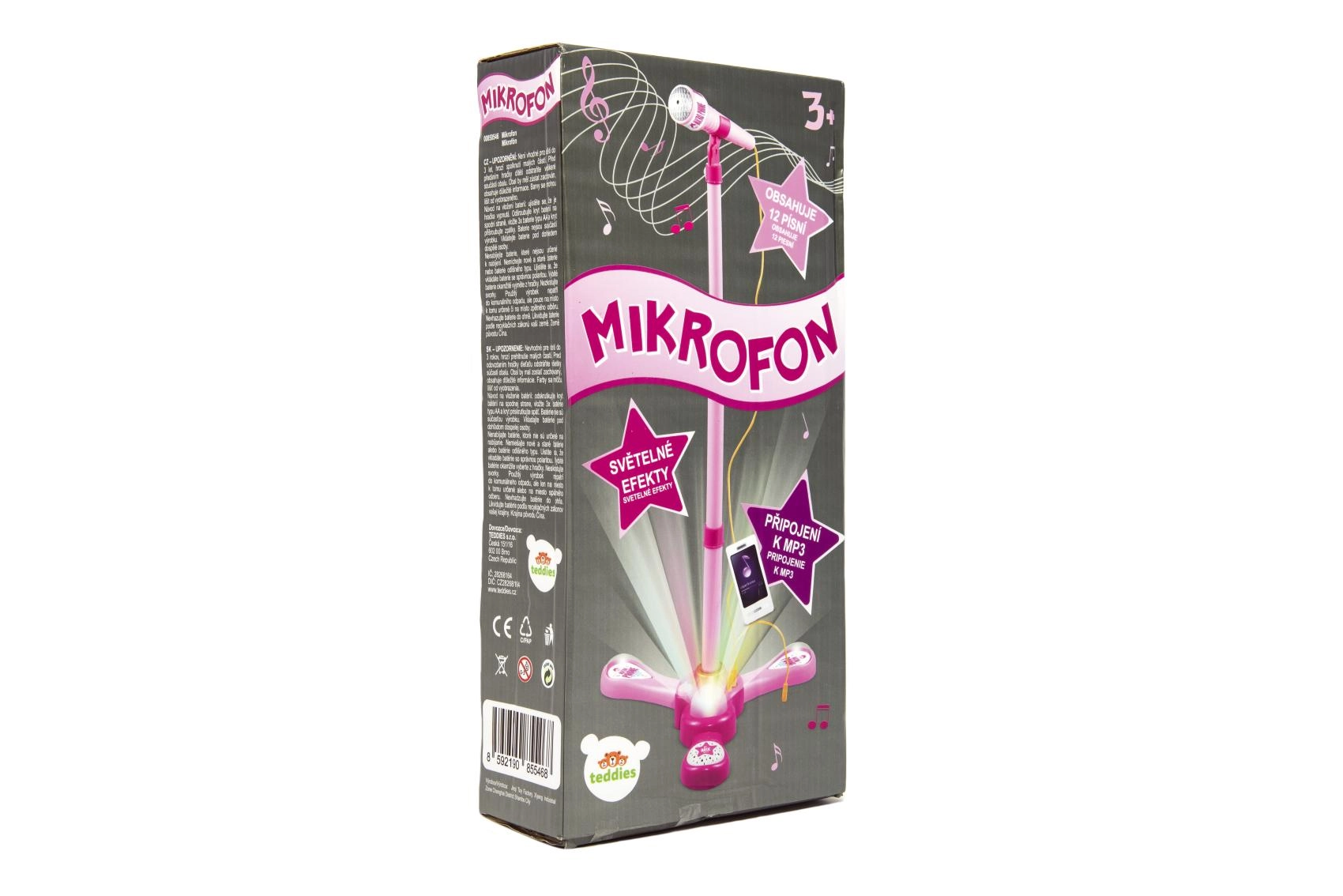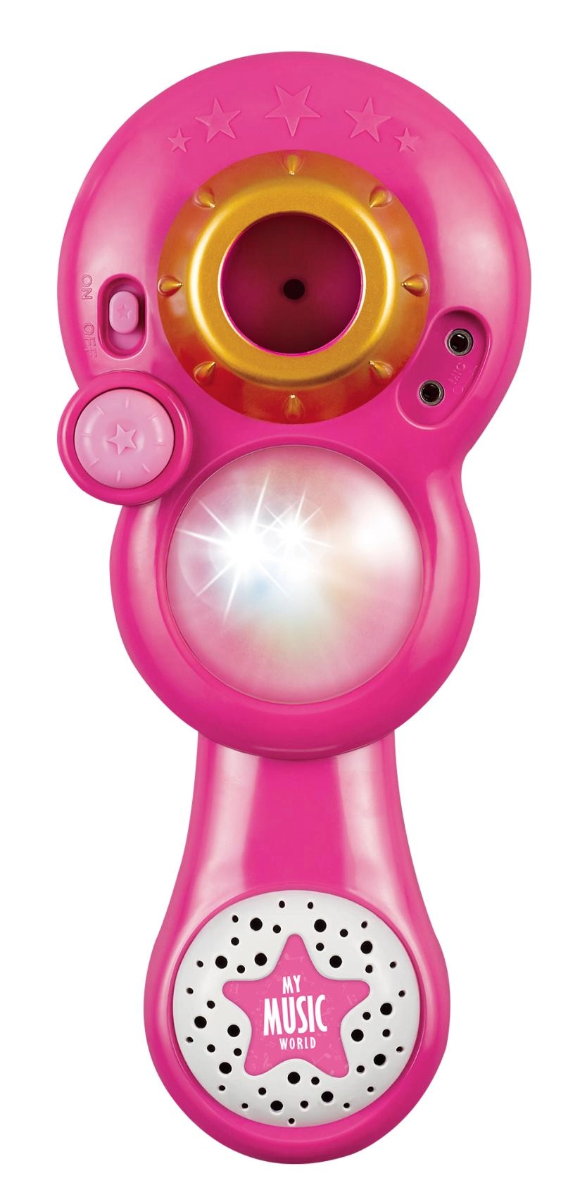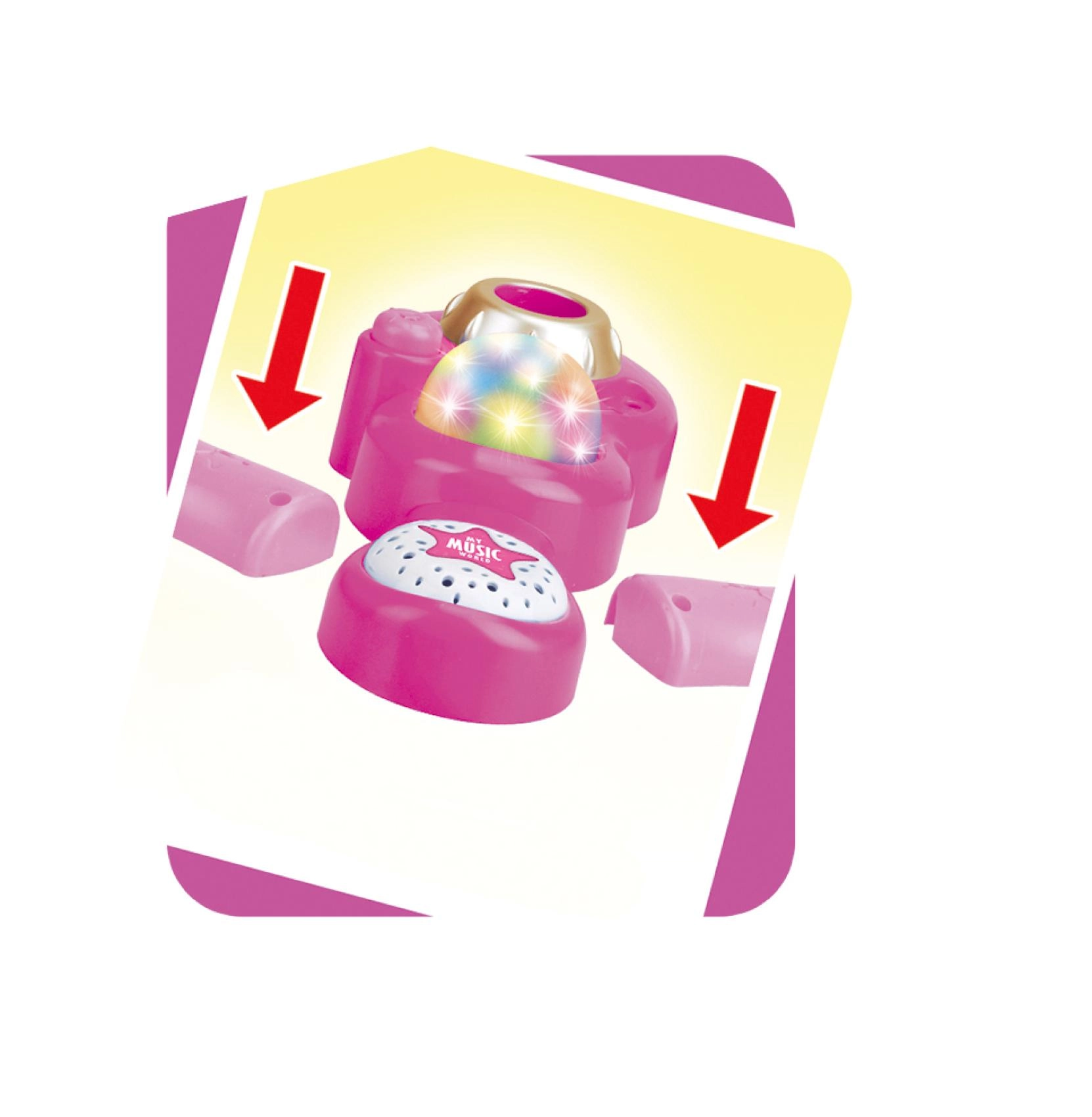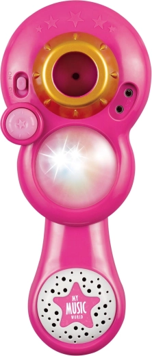 Arrangér et uforglemmeligt karaokeshow derhjemme. Denne pink mikrofon med stabilt trefodsstativ har iøjnefaldende lyseffekter og afspiller 12 forudindspillede sange. Du kan nemt tilslutte en MP3-afspiller eller mobiltelefon og sætte yndlingshits på.