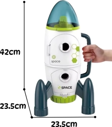 Raketten er lavet af holdbar og sikker ABS-plast og har et praktisk bærehåndtag for nem transport. Den åbne cockpit og døre giver adgang til kontrolrummet og det nedre hangarområde, så børn kan skabe egne scenarier og udvikle kreativitet, hånd-øje-koordination og motorik. Legetøjet egner sig til børneværelset, daginstitutionen og på farten.
