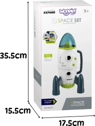 Den interaktive Woopie-raket er et gennemtænkt sæt for små opdagere, som giver en autentisk oplevelse af rummissioner. Børn kan placere astronautfiguren i det 360° drejelige sæde, flytte den mellem den øvre kapsel og den nedre sektion og tage på opdagelse med rumroveren. Legen forstærkes af nedtælling til start og en oplyst base, der skaber en realistisk raketopsendelsesstemning.