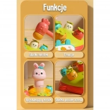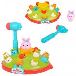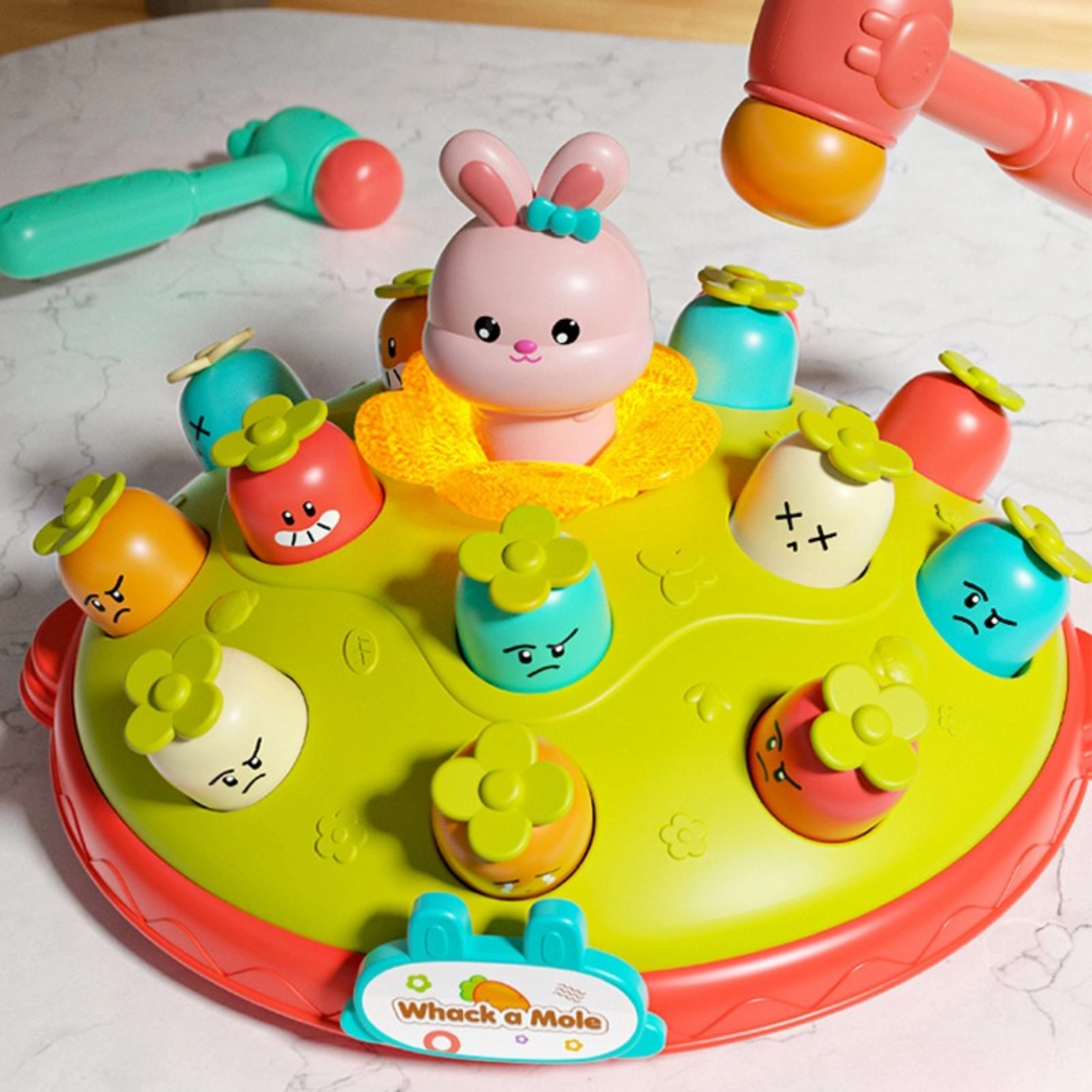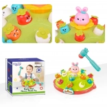Den sikre udførelse med glatte overflader og bløde hamre beskytter små fingre, mens det farverige design med kaniner og planter stimulerer fantasi og kreativitet. Spillet kræver batterier (medfølger ikke), så I let kan tage det med overalt.