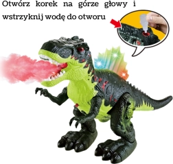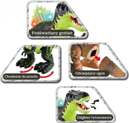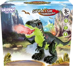Spektakulær interaktiv dinosaurus Tyrannosaurus Rex fra Woopie giver børn en enestående forhistorisk oplevelse. Den kan gå fremad, har en bevægelig kæbe, et farverigt oplyst rygskjold og udsender autentiske brøl. Derudover forstøver den effektfuldt tåge, som imiterer en flammende ild.