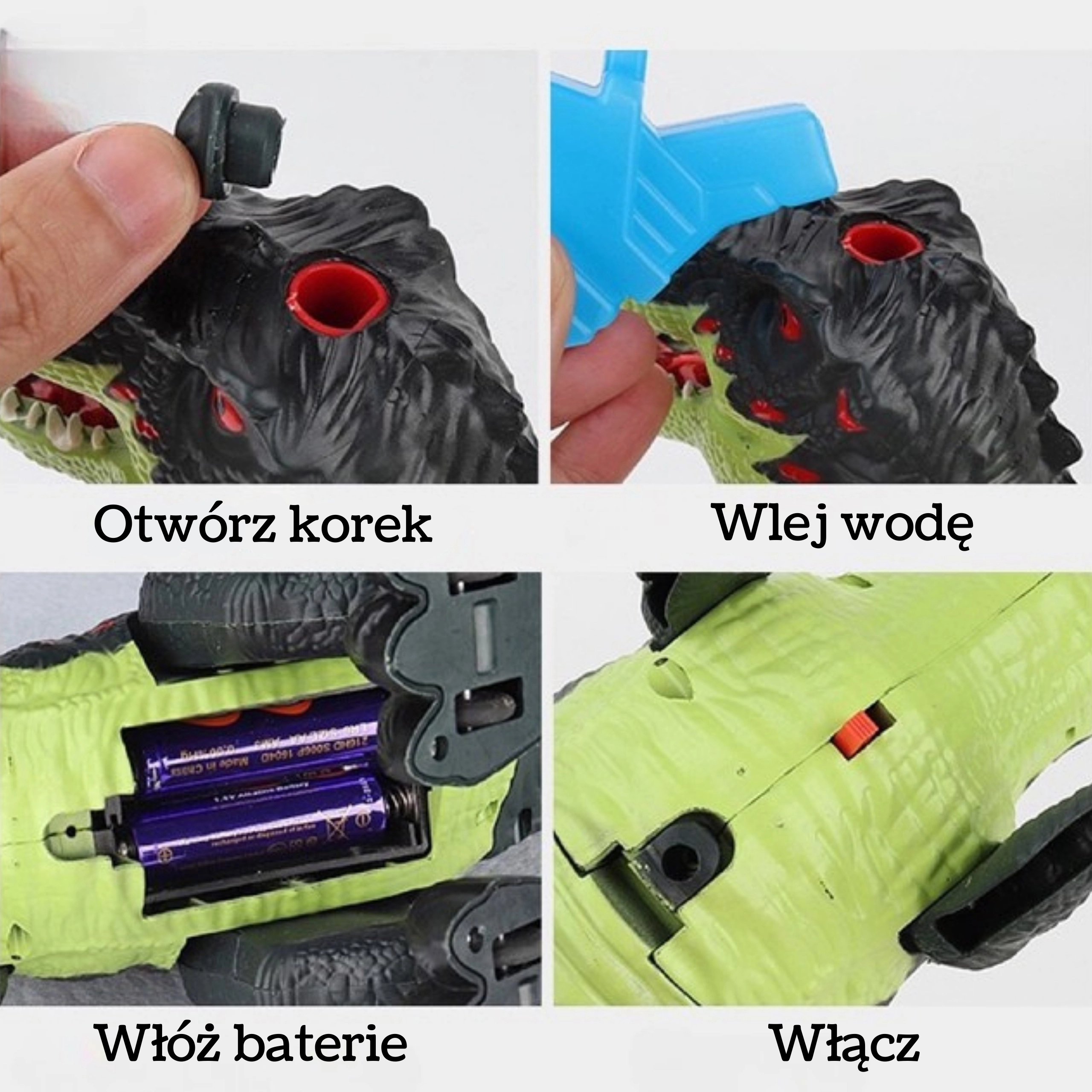 - Bevægelig kæbe med autentisk T-Rex-brøl.
