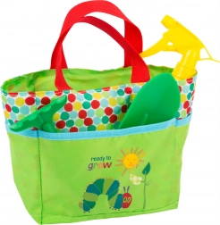 Pakken indeholder grundlæggende værktøj i let plastik: en skovl til omplantning, en rive til jordforberedelse og en forstøver til vanding og pleje af planter. Tasken med mange praktiske lommer holder alting overskueligt på sin plads og motiverer børn til selvstændighed.