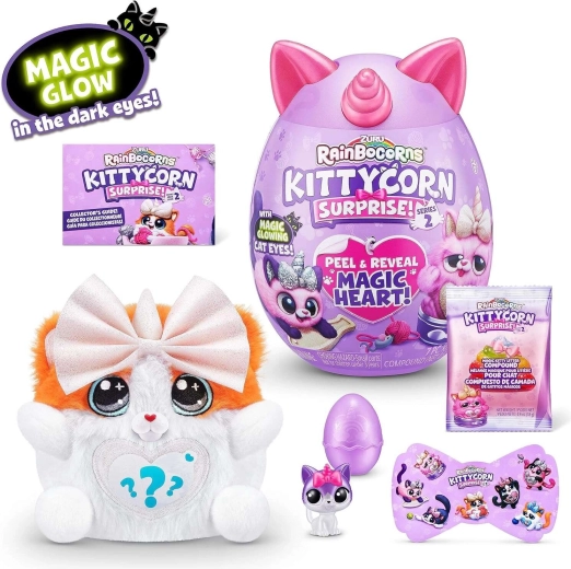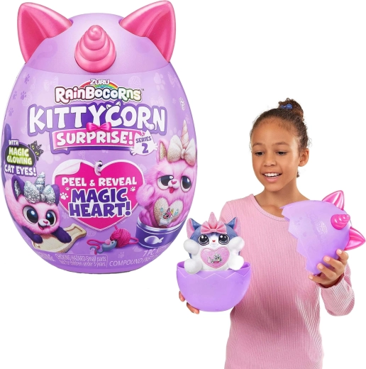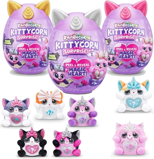 Oplev den magiske verden af RAINBOCORNS KITTYCORN SURPRISE – en superblød plyskilling med enhjørningehorn og hemmelige accessories gemt i et æg. Hver pakke bringer udpakningsglæde, bytte af tilbehør og kreativ leg. En fantastisk gave til børn fra 3 år og en samlerkollektion med 7 forskellige kæledyr.