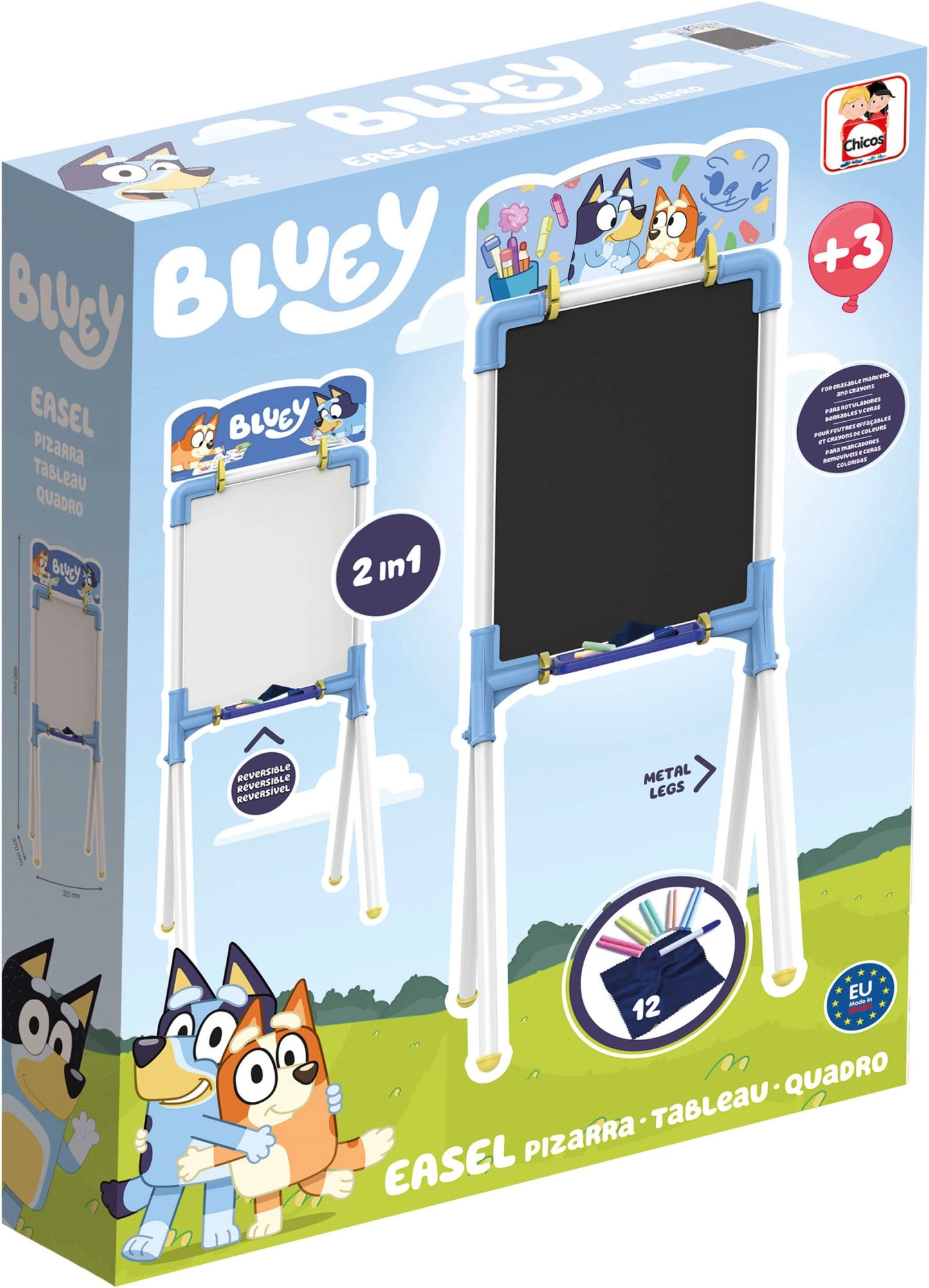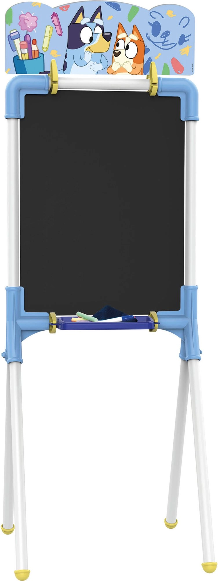 Denne dobbeltsidede BLUEY-tavle 2-i-1 udvikler børns kreativitet og gør læring legende. Den tilbyder en hvid tørbar flade til marker og en sort kridtflade – børn kan nemt skifte mellem at skrive, tegne og regne. Det glade BLUEY-motiv fanger interessen og støtter både fantasi og koncentration.