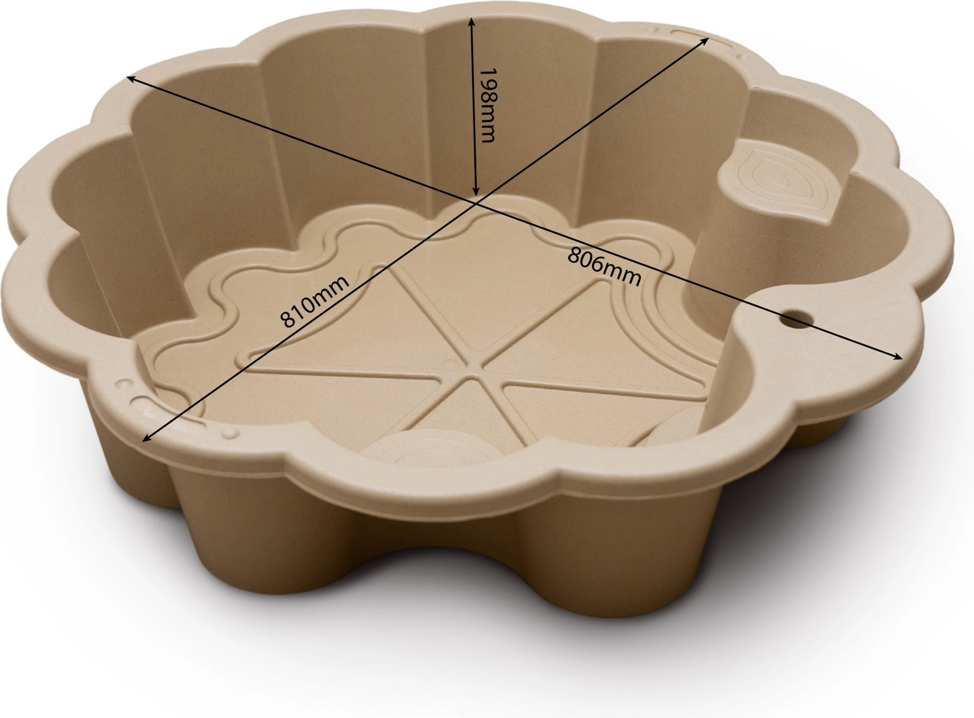 Giv børnene glæden ved udendørs leg med DOLONI-sandkassen i blomstermotiv. Takket være de to indvendige sæder kan børnene sidde behageligt, mens de leger. Materialet af EKO-råvarer baseret på hvedestrå hjælper med at reducere CO₂-aftrykket og føles behageligt at røre ved.