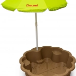Nyd timevis af udendørs leg med en sandkasse formet som en blomst, fremstillet af økologisk materiale baseret på hvedestrå. Takket være parasollen giver den behagelig skygge, to integrerede sæder sikrer komfort, og de kompakte mål er ideelle til have, terrasse og altan.