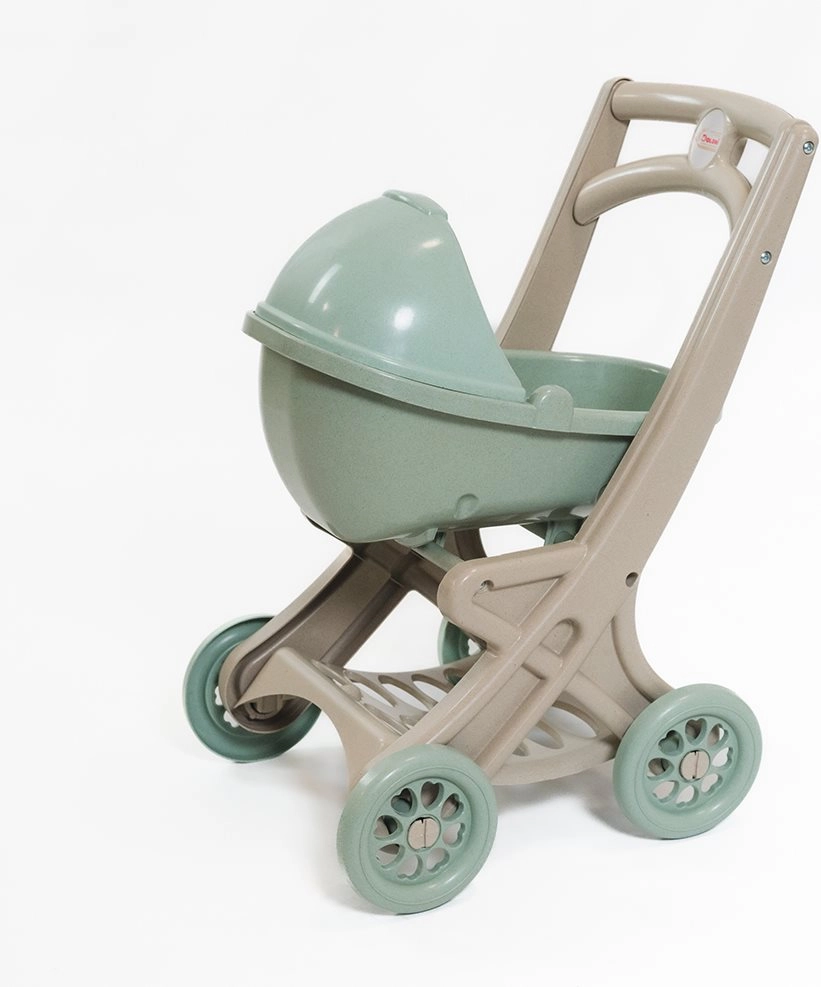 Oplev den stilfulde DOLONI dukkevogn fremstillet af ØKO-råmaterialer baseret på hvedestrå. Dette materiale hjælper med at reducere CO2-aftrykket og giver både holdbarhed og et behageligt, naturligt look. Vognens lette og stabile design passer perfekt til hverdagens leg både inde og ude.