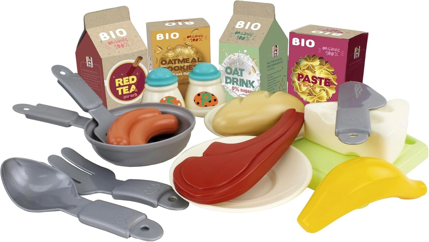 Sættet indeholder 19 stykker tilbehør, herunder pande, tallerkener, bestik og “mad”, så legen som chefkok kan begynde med det samme efter udpakning. Rolleleg bliver aldrig kedeligt og udvikler naturligt kreativitet, kommunikation og ansvarlighed.