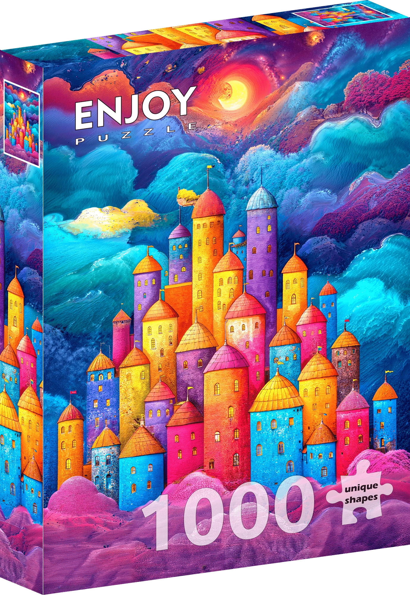 Oplev en underholdning, der kombinerer fokus og ro. ENJOY-puslespillet med motivet Fæstning i skyerne tilbyder en velafbalanceret sværhedsgrad for øvede og tålmodige begyndere. Takket være 1000 præcist udskårne brikker får du en jævn samleoplevelse og et tilfredsstillende slutresultat.