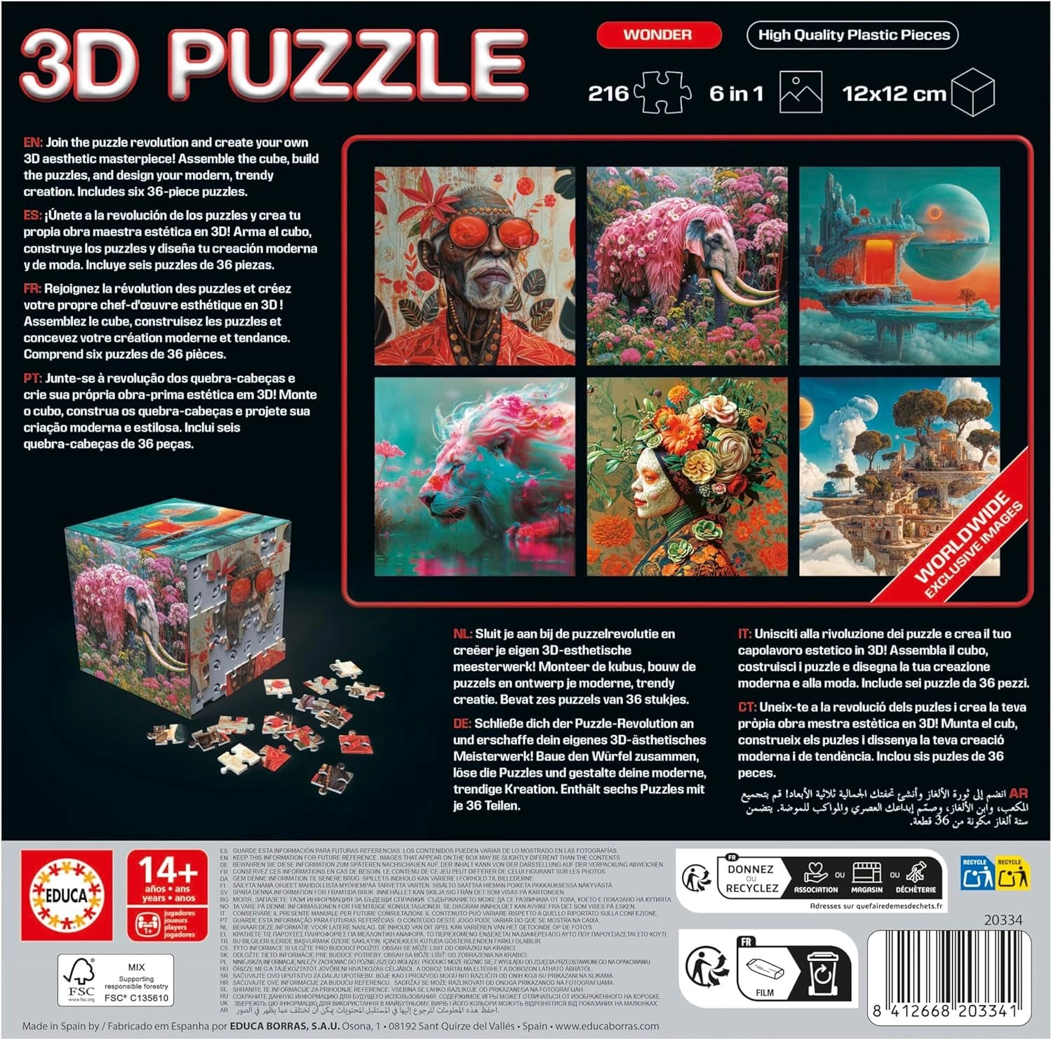 Oplev kreativ samling med 3D-puslespils-kuben WONDER fra EDUCA. Takket være den gennemtænkte opdeling i 6 dele á 36 brikker bliver samlingen overskuelig og sjov – perfekt for både begyndere og øvede puslespilsentusiaster.