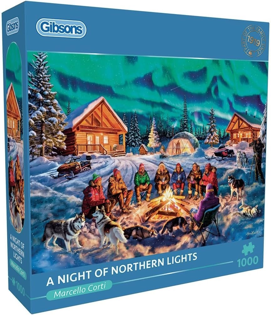 Træd ind i Nordens magiske verden med puslespillet “Nat med nordlys”. Takket være præcis tryk og dybe farver træder hver detalje af nattehimlen tydeligt frem. Mærket GIBSONS er kendt for materialer af høj kvalitet og perfekt tilpassede brikker, der er behagelige at samle.