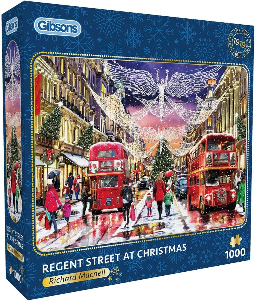 Oplev en detaljeret vinterscene af ikoniske Regent Street med juleudsmykning. Puslespillet fra GIBSONS er kendt for sin høje kvalitet, nøjagtige udskæringer og dybe farver, som gør det til en fornøjelse at lægge fra første til sidste brik.