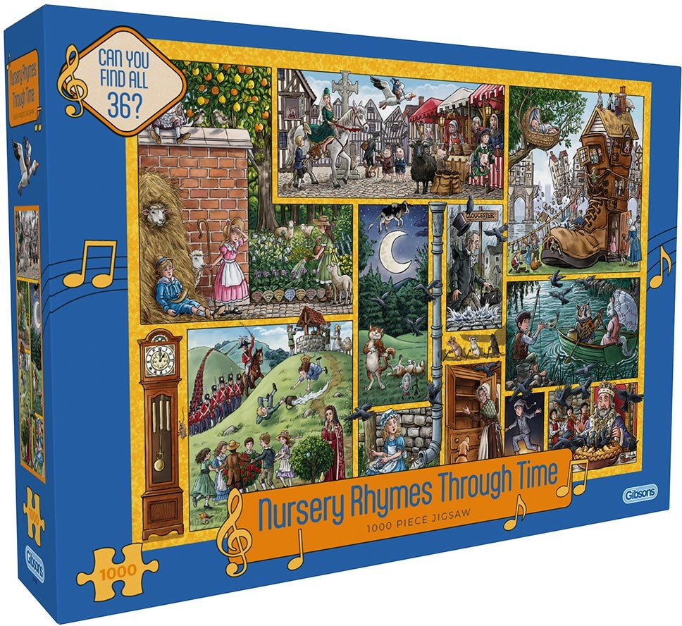 Tag på en rejse gennem tiden med et tema af elskede rim og illustrerede scener, som vil glæde både børn og voksne. Puslespillet fra GIBSONS er kendt for sin præcise udførelse og behageligt tilpassede brikker, der sikrer en gnidningsfri pusleoplevelse.