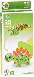 En kreativ 3D-pappuslespil forvandler flade dele til en farverig stegosaurus med kraftigt orange plader på ryggen. Delene skal blot trykkes ud og samles efter en enkel fremgangsmåde på emballagen – uden saks og lim.