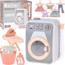Takket være LED-belysning i tromlen (grøn/rød), vaske- og melodi-lyde samt tromlens rotation bliver legen ekstra fængende. Det rige sæt tilbehør (strygejern, strygebræt, bøjler, kurve, flasker med “detergent”, kjoler til dukker m.m.) åbner for flere legescenarier – fra vask og ophængning til strygning og organisering af garderoben.