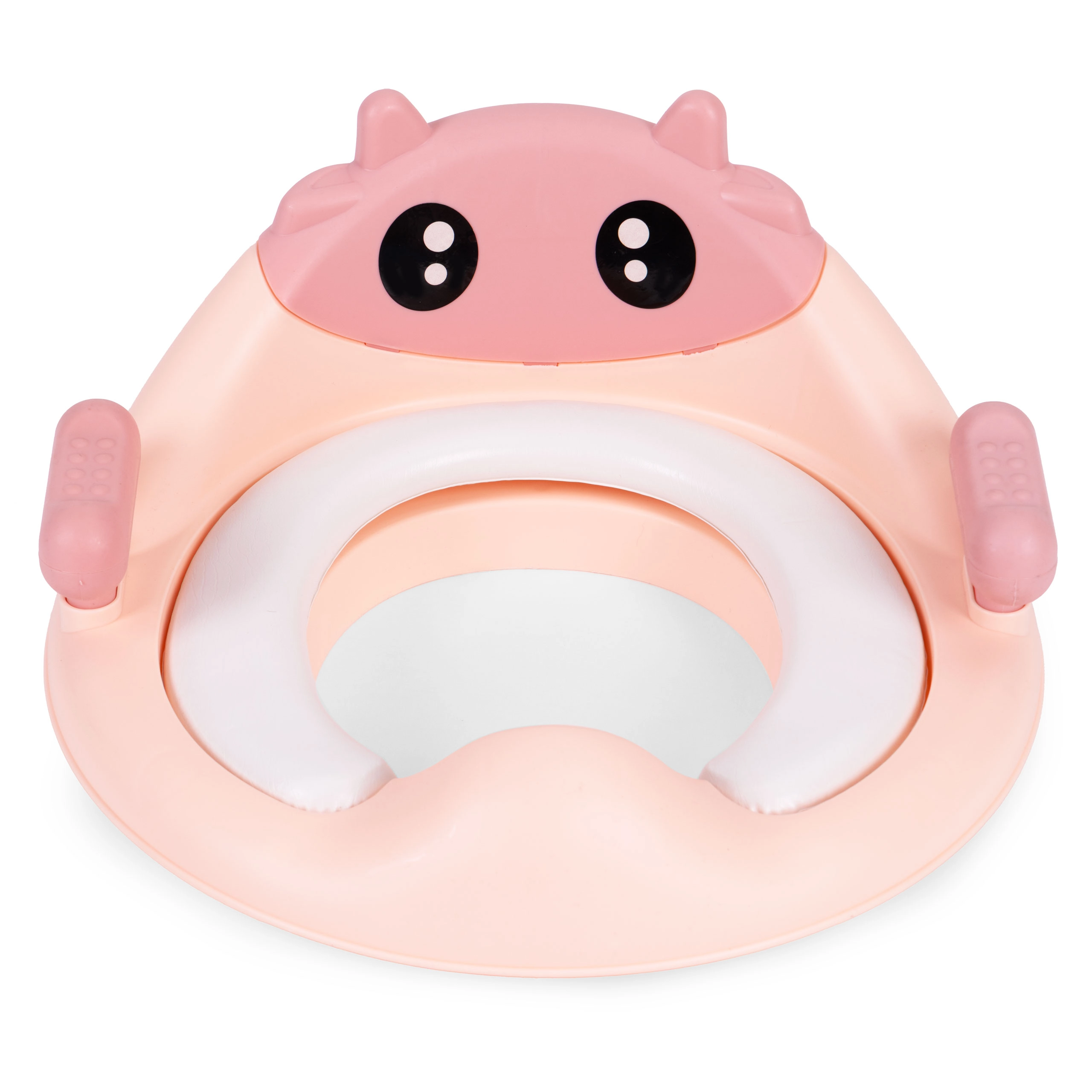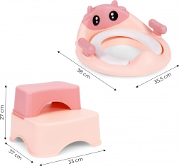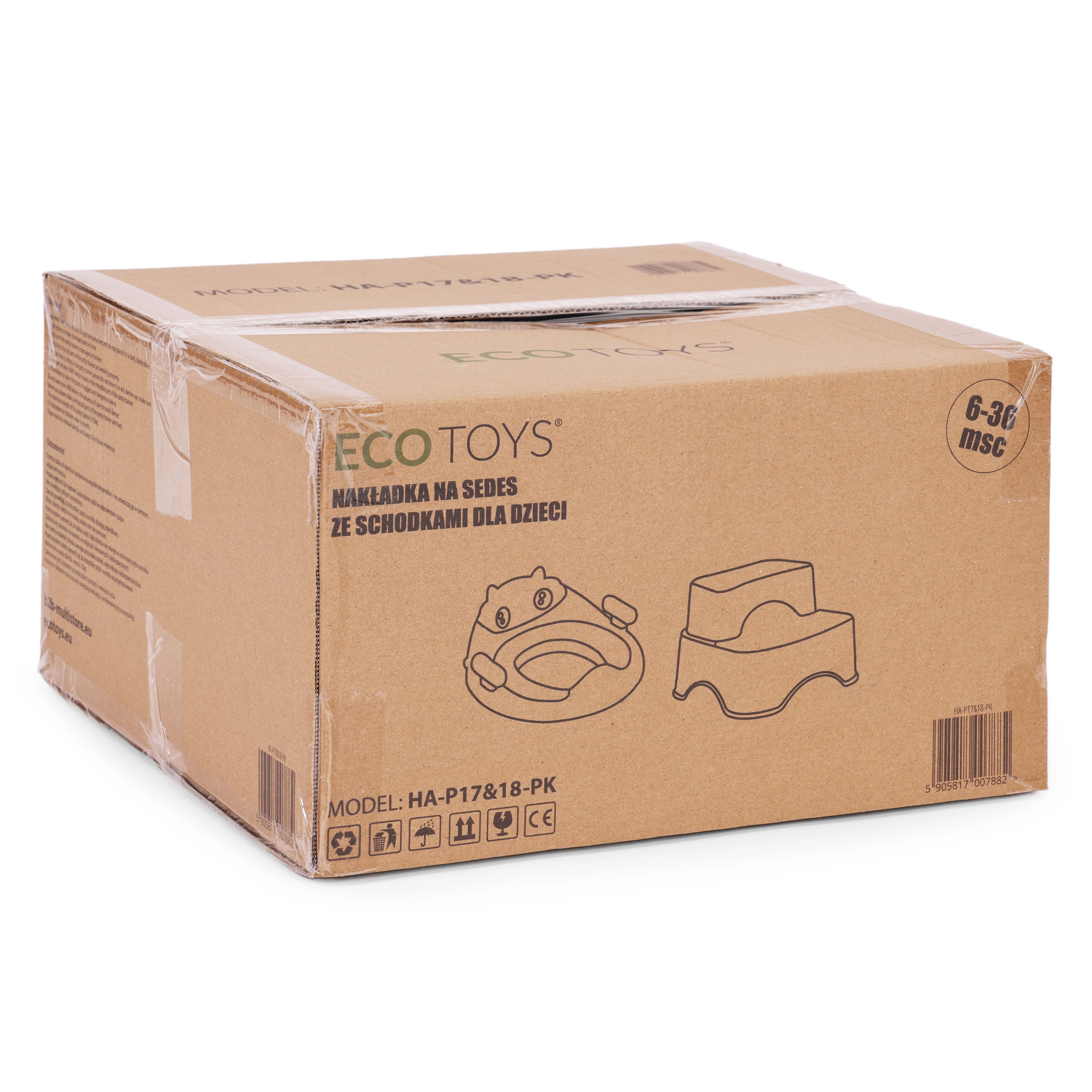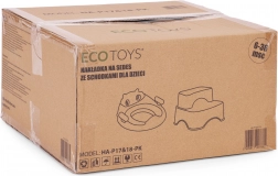 Giv dit barn tryghed og komfort i overgangen fra ble til toilet. Det rosa ECOTOYS WC-sæde med blød “pude” placeres sikkert på en standardtoilet takket være ergonomisk form og sidehåndtag, mindsker åbningen og giver stabil støtte. De to trin med skridsikker belægning hjælper barnet nemt og sikkert op.