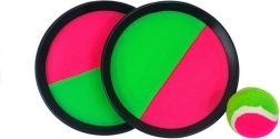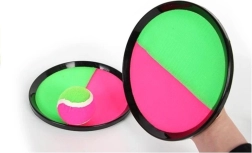 Det populære kastespil med velcrooverflade giver masser af action i haven, parken og på stranden. To runde bats i pink‑grøn og en let, pelsagtig bold sikrer nem fangst og præcise afleveringer.