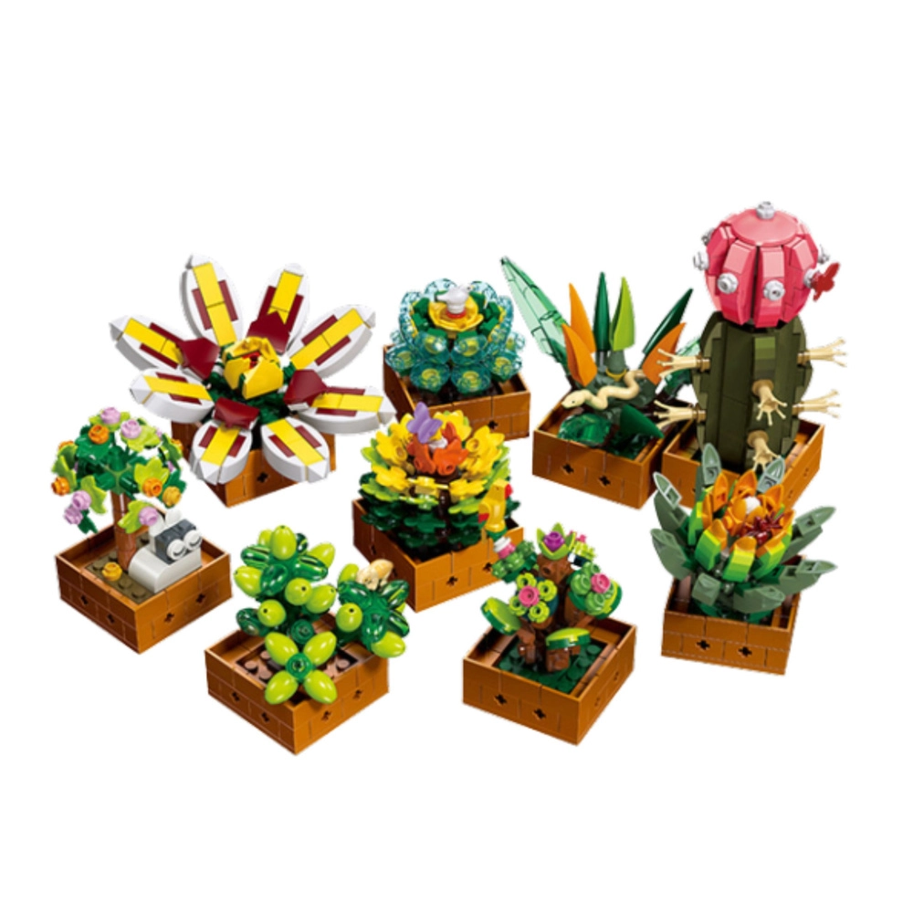 Dette designbyggesæt lader dig samle en farverig samling planter – fra eksotiske kaktusser til iøjnefaldende blomster med brede kronblade. Takket være præcist udformede dele ser modellerne realistiske ud, og når de placeres i urtepotter, bliver de en elegant interiørdekoration.