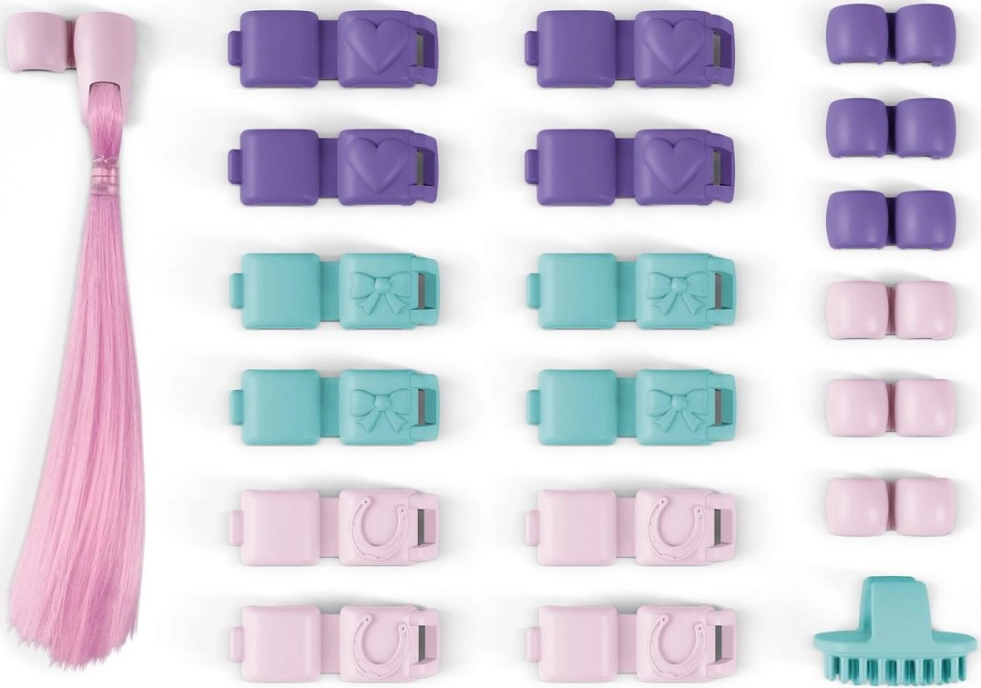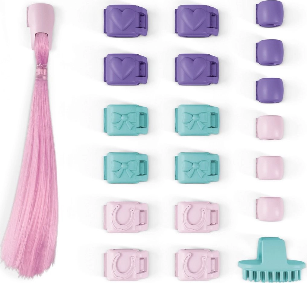 Skab smukke frisurer til dine heste med tilbehørssættet SCHLEICH HORSE CLUB. Pastelfarverne – mint, lavendel og lyserød – passer til hopper og hingste af alle racer. Før du sætter tilbehøret på, er det nok at rede manen grundigt med børsten, så spænderne holder selv ved de vildeste spring. Den lyserøde hårtot giver frisyren den sidste “wow”-effekt.