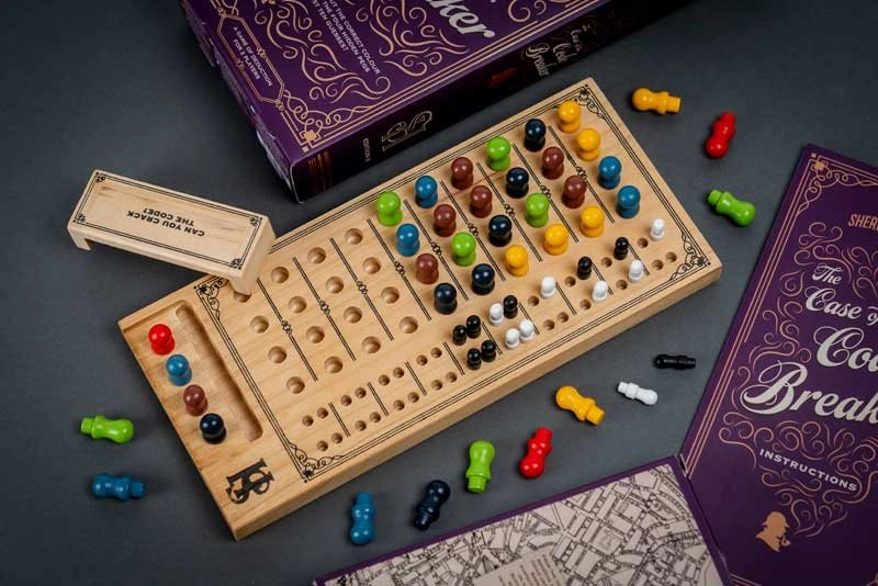 Den legendariske Mastermind-type hovedbrud i elegant træudgave bringer smarte dueller én mod én. Den ene spiller vælger i hemmelighed en kombination, den anden forsøger at afsløre den på op til ti forsøg ved hjælp af hvide og sorte vurderingspinde. Kombinér, dedukér og overlist modstanderen ligesom SHERLOCK HOLMES sin rival.