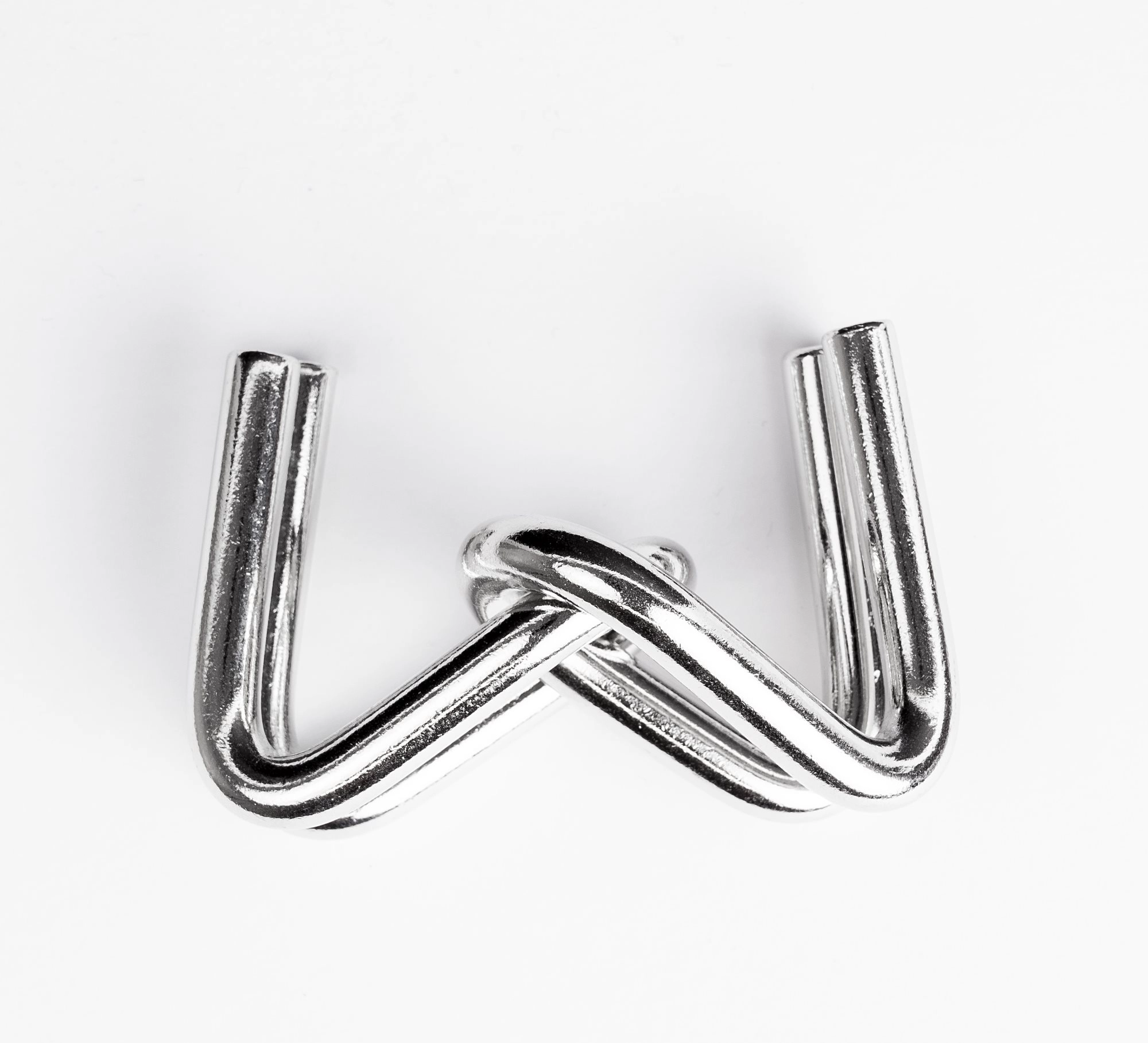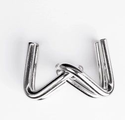 To sammenkoblede metaldele tester dine løsningsfærdigheder – lær at adskille dem og samle dem præcist igen.