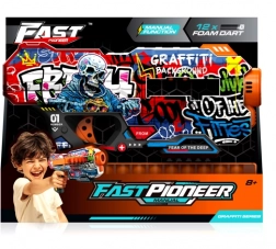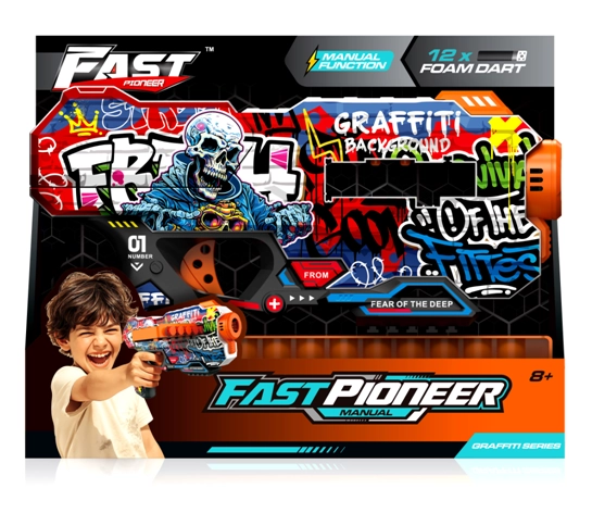 Den manuelle pistol Fast Pioneer giver pålidelig og sikker action-underholdning for børn og begyndere. Takket være opladningsmekanismen kræver den ingen batterier og er altid klar til action. Skumprojektilerne er skånsomme mod møbler og sikre at lege med sammen med venner.