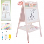 Denne kvalitets trætavle er ideel til kreativ leg og de første skolefærdigheder. Det dobbeltsidedede design gør det muligt at skrive med tusch på den hvide magnetiske side og tegne med kridt på den anden. Den praktiske hylde til tilbehør holder alt ved hånden, og den stabile trækonstruktion sikrer sikker brug.