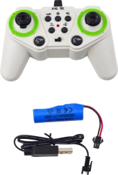 Modellen drives af et 3,7 V batteri (med i pakken), fjernbetjeningen kræver 3× AA 1,5 V batterier (ikke inkluderet). Den robuste plastkonstruktion med metaldele giver længere levetid og bedre stabilitet under kørsel.